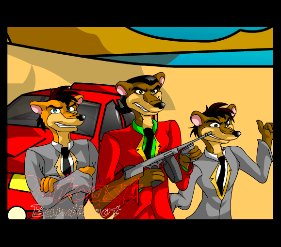 "No! Well cant beat Dr Cortex... he's got too much defence, We don't really stand a chance! So I'll go with Dr Cortex, and you two... Can stay here... you can look after you're selves" Bong told Crunch and Tani, "No Bong, You’re no good for me anymore! I'm taking Crunch and Tani; they're a good pair of Minions... They even managed to escape to my secret Laboratory! And never got caught! Now that's skilful! Unlike you, who just threw rocks at Crash and nothing more than that! Hah!" Neo Cortex laughed, "What makes you think we'll go with you Huh?" Crunch yelled at Neo "Yeah, Come 'on! We're not gonna listen to you anyway, so you should just leave us here..." Tani shouted at Neo Cortex "Oh you two will listen alright... I don't let anyone get away! But I've got a deal... I want you to face my most experienced minion... and if you win, I'll let you two go free... " Neo said evilly, "Who is it then?" Crunch asked Neo Cortex, and then a flying Futuristic car flew out of nowhere and landed near Crunch and Tani... "Meet, The Potoroo Gang, Mohaaaahahahahahahha!" Neo Cortex laughed evilly, Then... a Potoroo in a gray colored suit with orange fur came out of the car... it was Blaze, and another Potoroo also with a gray suit jumped out of the car, doing Siegs like an idiot... it was obviously Siegdog, finally, a Potoroo with a red suit holding a Tommy gun came out, looking mad... His name was Pinstripe...