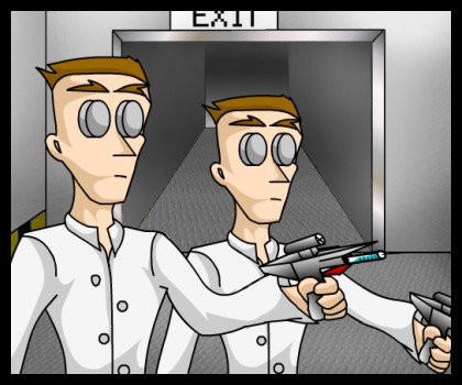 N.Gin then arrived in the Cafe, and saw Crunch at the table, drinking a glass of water "Thank you very much for taking the robot pieces to my Lab" N.Gin Told Crunch "Yeah, you’re welcome So, is Dr Cortex still trying to catch that Crash Bandicoot guy..." Crunch asked N.Gin "Yeah, the same old 'Take over the world' plans and 'Destroy Crash Bandicoot' plans, it makes me so bored..." N.Gin yawned "Yeah, it must be so boring being you, as his minion..." Crunch told N.Gin "Yes, but I've got no choice, He saved me, ages ago" N.Gin told Crunch "Saved you? But how?" Crunch asked N.Gin "Well, I was working in my lab, on Earth, and one of my rockets went out of control and it got me in the head, and luckily Neo came, and saved my life, to bad I have to keep is horrible rocket in my head though... Well, that's why I'm Cortex's right hand man, because he saved my life and plus, we've been friends ever since School life" N.Gin told Crunch "Well, that's kind of shocking... Because Cortex is a careless bastard! But I don't blame you, he saved your life, so its your choice to be loyal to him or not!" Crunch told N.Gin "Yes, you’re right, I've just got to go and get something, I'll be right back!" N.Gin told Crunch "Yeah, what ever" Crunch replied, then N.Gin walked out of the cafe, and went down the hallway "Well well N.Gin, who were you talking to?" Neo Cortex asked N.Gin "Gah Neo! Well uh, I was, uhh..." N.Gin was speechless "Hmm, you must have one of my Minions! Or something, come on...TELL ME!" Neo asked N.Gin "Well Dr Cortex... I don't think you should know..." N.Gin told Neo Cortex, Neo got more frustrated "N.GIN! I'm warning you..." Neo yelled at N.Gin "Ok ok! I'll tell you, remember the Bandicoot that you didn't want?" N.Gin asked Neo "What? You mean Fake Crash? What are you doing with him?" Neo asked N.Gin "No, Not Fake Crash, Crunch..." N.Gin said with nervousness, Dr Cortex's face lit up with shock "C-Crunch.... WHAT? But he's DEAD! He couldn't have survived that laser! Did he?" Neo asked N.Gin "Yes, he did survive that laser, But he's got a metal arm, but he's fine with me" N.Gin told Neo "Whoa, I better go and see him" Neo Cortex told N.Gin "NO that... wouldn't be a good idea..." N.Gin warned Neo "Why?" Neo asked "Well, Crunch still remembers what you did to him, and he wants you...uh...kill you!" N.Gin told Neo "Kill me? Hmm, Let me see him, He might not me right for my New secret weapon anyway... but if he isn't, then I'm afraid I am going to have to exterminate him" "What!? But why? He's a great minion!" N.Gin told Cortex "Well, there really is no point in having a minion that tries to kill me, but if he really is as great as you so then... he may be of good use" Cortex explained to N.Gin "Ok, just come upstairs, and look through these windows" N.Gin told Neo and N.Gin went upstairs, and Neo followed N.Gin.
