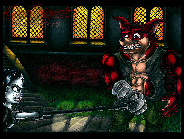 Crunch now found the large main entrance door, at the office... he slowly walked up the stairs "Hmm, I think its time to have a good talk with Amberly... " Crunch thought, as he got closer to the large door, the door then opened itself and Amberly was standing there, she frowned angrily "Ugh! I have had enough of you! How dare you mess around with our plans! Crimzon Demoness is NONE of your business!" Amberly shouted at Crunch in rage, Crunch didn't seem all that thrilled though "I really don't care about you and your minions, Crimzon is to be destroyed, by ME! I'm not going to take any chances and let some oversized witch deal with this problem...." "how dare you speak my name in vein!" She shouted, as she fired a spark of lighting at Crunch, Crunch attempted to block it with the metal arm, "Hmm very familiar, I'm guessing you're the creator of Jaseo bilby then?" Crunch asked "Correct. But you must leave now, we're going to deal with this problem ourselves, we are unsure of what to do at this stage, but we WILL defeat Crimzon!" said Amberly, "I highly doubt it, I don't see how someone like you could take on a Demoness..." Crunch said, as an insult. Amberly screwed her face up in disgust, "ugh! Cortexes creations make me sick! I'll let my top student deal with you instead...." Amberly said, as she turned her back on Crunch "What? So you're just going to walk away from me? Don't be so pathetic! If it's a battle you want them come for it!" Madame Amberly ignored Crunch as she disappeared into the darkness... then in a mere few seconds, a short figure dashed quickly towards Crunch, surprising him "YAH!" the female voice yelled, Crunch quickly jumped back into the dark schoolyard behind him, the shadow of the girl soon vanished into the darkness along with Crunch, "Grr! I can't believe she's making me fight a school girl!" Crunch thought, it was dark but his night vision could see objects around him but not clearly, "Watch out animal!" she shouted. She knew where Crunch was due to his large size... making him an easy target,, and a metallic fist came directly for Crunch! She was quick, the fist hit Crunch on the side of his back, he was a bit surprised "What the... that's pretty tough for a girl...!" Crunch quickly turned, and tried keeping his focus on her, she ran around and attempted to punch yet again but with both fists this time, aiming for Crunch's face! Crunch saw them and moved as quick as he could, he was also puzzled that the girl was able to stretch her arms so far, "Wow what the hell is she? Well I have to try and stop her somehow, but I don't want to harm her though..." Crunch then thought of a plan, both the bandicoot and human girl were still in the dark, she ran close to Crunch and tried a spin attack this time! Crunch was pushed back a bit, as if it was Crash that did that "You are so annoying! I'll defeat you!!!" She screamed, he then tried a punch... but directly for Crunch's crotch,