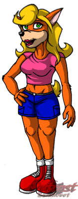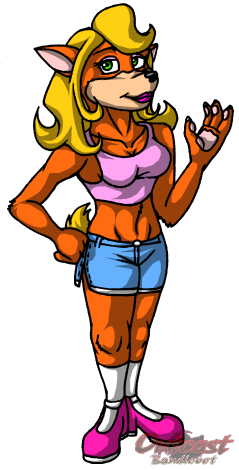 When I first played Crash 1. She has barely any personality so when I added her to the OB series, I made her act a bit 'whorish' and girly but however, she changes later on in the series after she has a child (proof that she wasn't a real whore, if she was, she'd have 20 kids by now, heh).