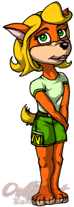 When she was first evolved, she was a sweet and innocent little girl, who cared about her brother and sister very much. She's Crunch and Crystal's half sister, meaning that she's a hybrid of two different bandicoot species... but she resembled her Eastern Barred Bandicoot side more. The burgundy bandicoot features were only her paws, muzzle, tail and height.