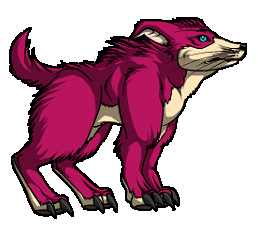 Characteristics- The fur colour is burgundy in colour, which takes up most of the body. While creamy-beige colored fur surrounds the muzzle and under areas. They usually have light-green eyes, but they can have other shades of green, blue and turquoise. The fur is very silky on most of the body, but is more rough and thicker on the back. With the long ridge of fur going from the head down to it's short tail. They can also have different facial markings, and other beige marks around their body like their limbs. The Unevolved and Half Evolved form have 5 digits (toes) on their frontpaws, but only 3 of them are enlarged with long sharp claws, while the other 2 digits are small and not of much use to the animal. Their back paws are very kangaroo like, with only 3 digits each having a large claw on (the 3rd and 4th are fused together). The Evolved/Anthro forum has 4 digits on the front pawhands, all are clawed (the 5th has disappeared). And 3 on their back paws, like their previous forms but are able to stand upright and walk. But can still run on all fours if they want to (though if they're too muscular and bulky, then they can't).